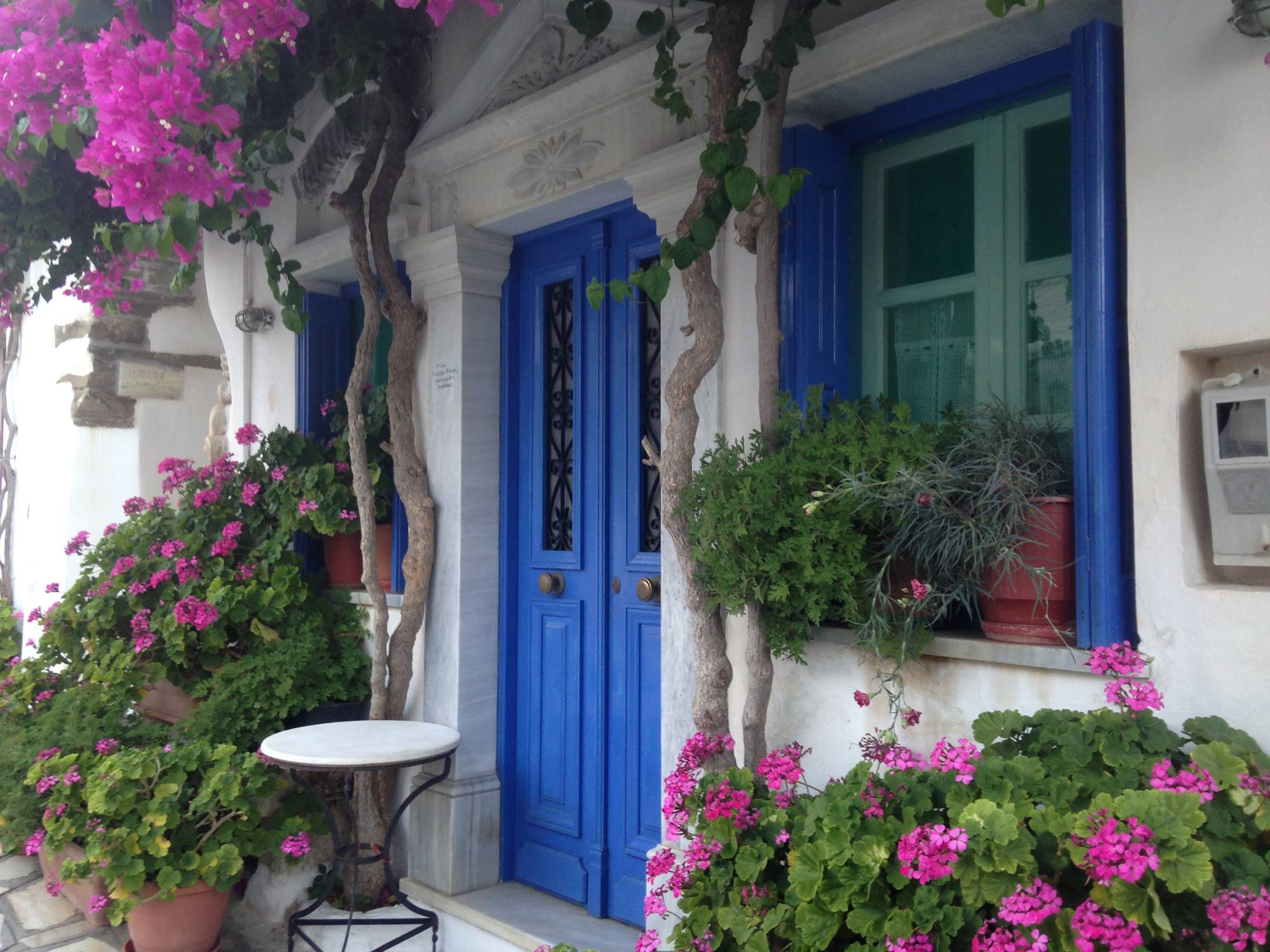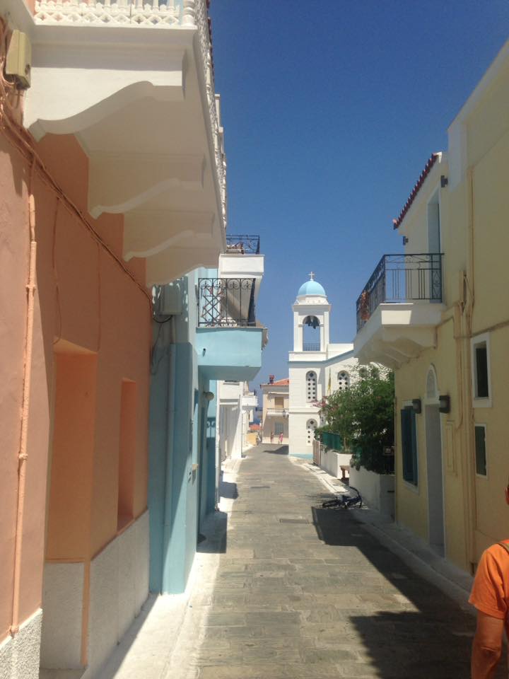 Depuis Batsi, nous sommes partis chaque jour en scooter à la découverte de l’ile en commençant par Chora, chef-lieu de l’ile. En nous promenant nous découvrirons des très jolies maisons, églises et autres édifices mélangeant l’architecture cycladique et néoclassique, blanches et de couleurs pastel tranchant parfois avec un bleu vif, superbe !