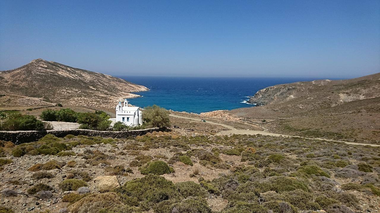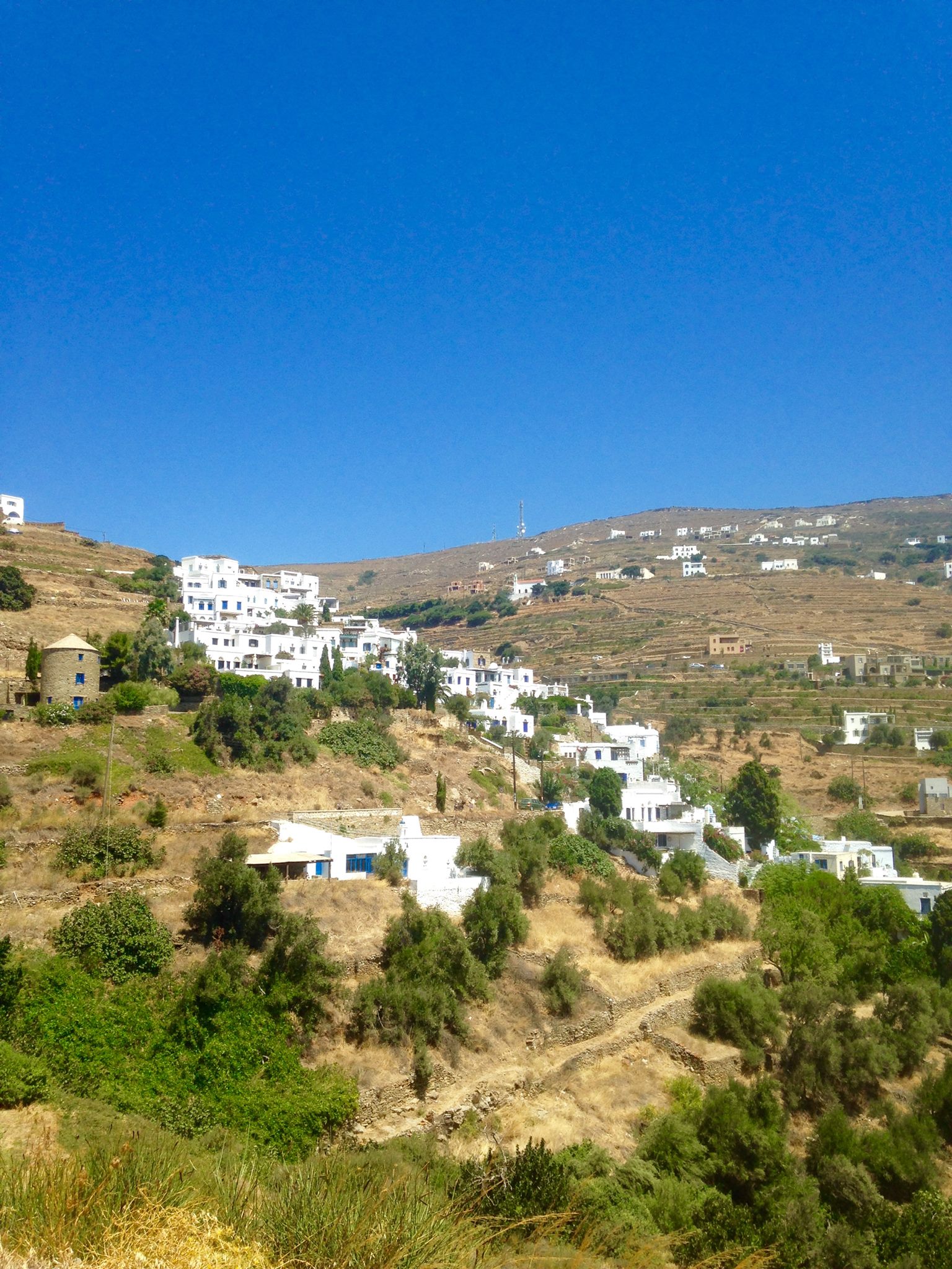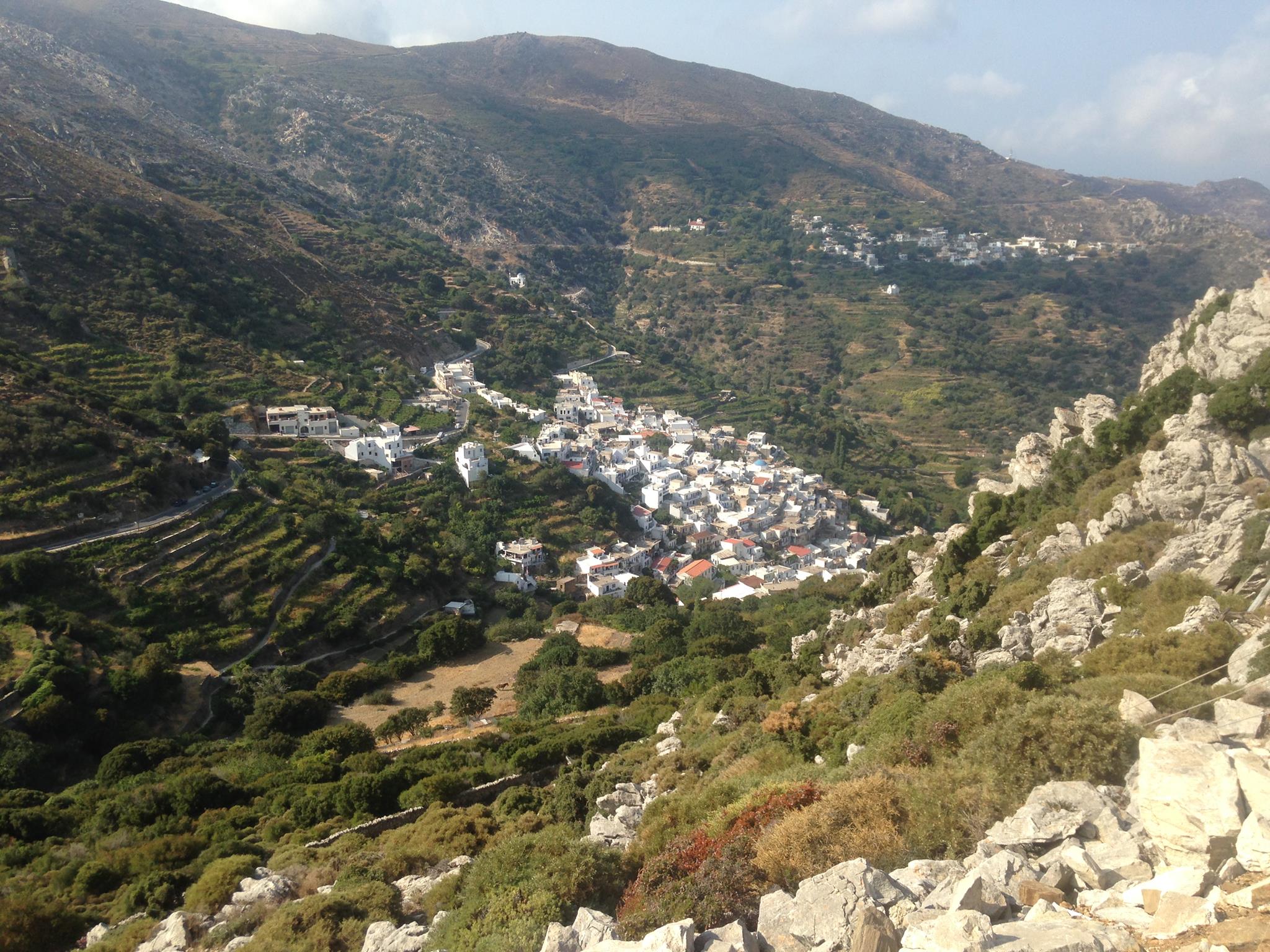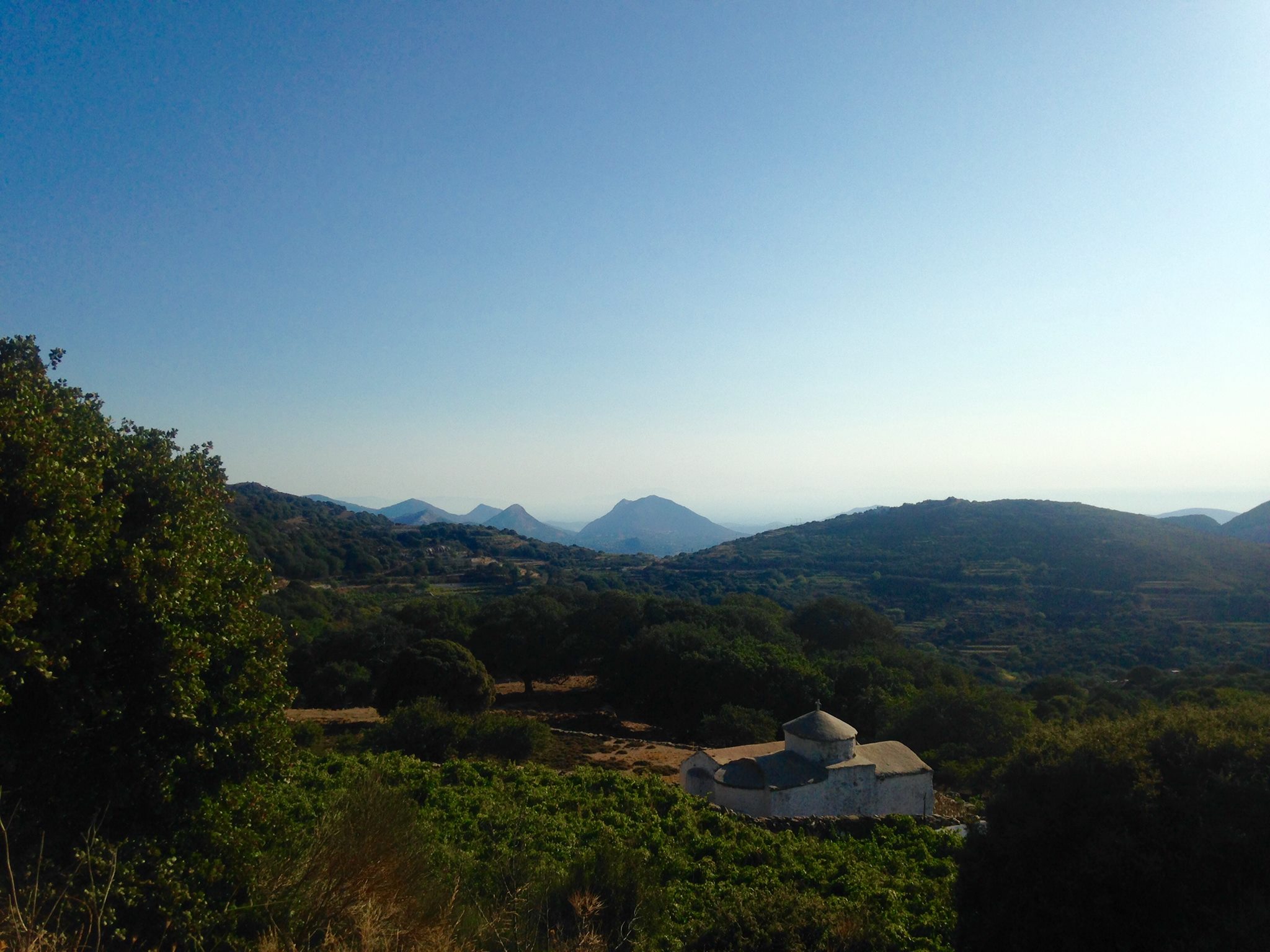 On a donc à l’intérieur de l’ile un paysage caillouteux et aride permettant des cultures artisanales et contrastant avec la côte. De ci de là des villages à l’architecture typiquement cycladiques, des pigeonniers construits par les vénitiens à partir du 13 ème siècle et des monastères souvent situés au milieu de sites magnifiques.