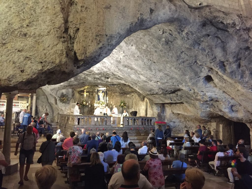 Nous nous dirigeons ensuite vers Monte Sant Angelo, un village perché dans les montagnes un peu plus reculé de la mer donc. Monte Sant Angelo vaut surtout pour le panorama que sa situation a à offrir ainsi que pour la visite du sanctuaire San Michele. Il s’agit du plus ancien sanctuaire d’Europe de l’Ouest, consacré à l’archange Gabriel qui selon la légende serait apparu à plusieurs reprises à l’évêque de Sipontum vers l’an 490. C’est aujourd’hui un très haut lieu de pèlerinage catholique mais que vous soyez croyant ou non, la visite vaut le détour. C’est la première fois que j’assistai à une messe dans un grotte pour ma part et l’expérience fut quelque peu insolite (je vous rassure, nul besoin d’assister à la messe du début à la fin, les touristes sont autorisés à passer à leur guise dans le fond dans la grotte à condition de garder le silence, du bon sens quoi).