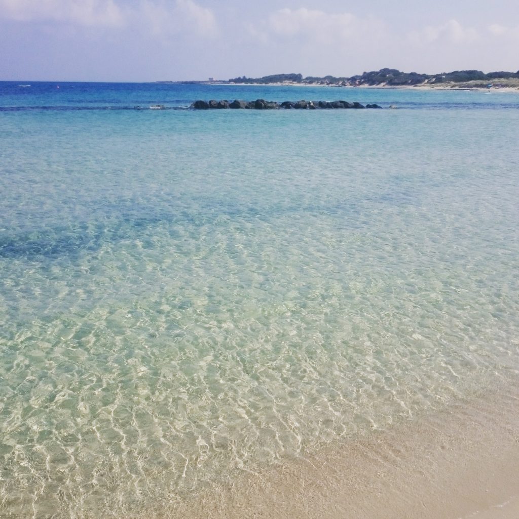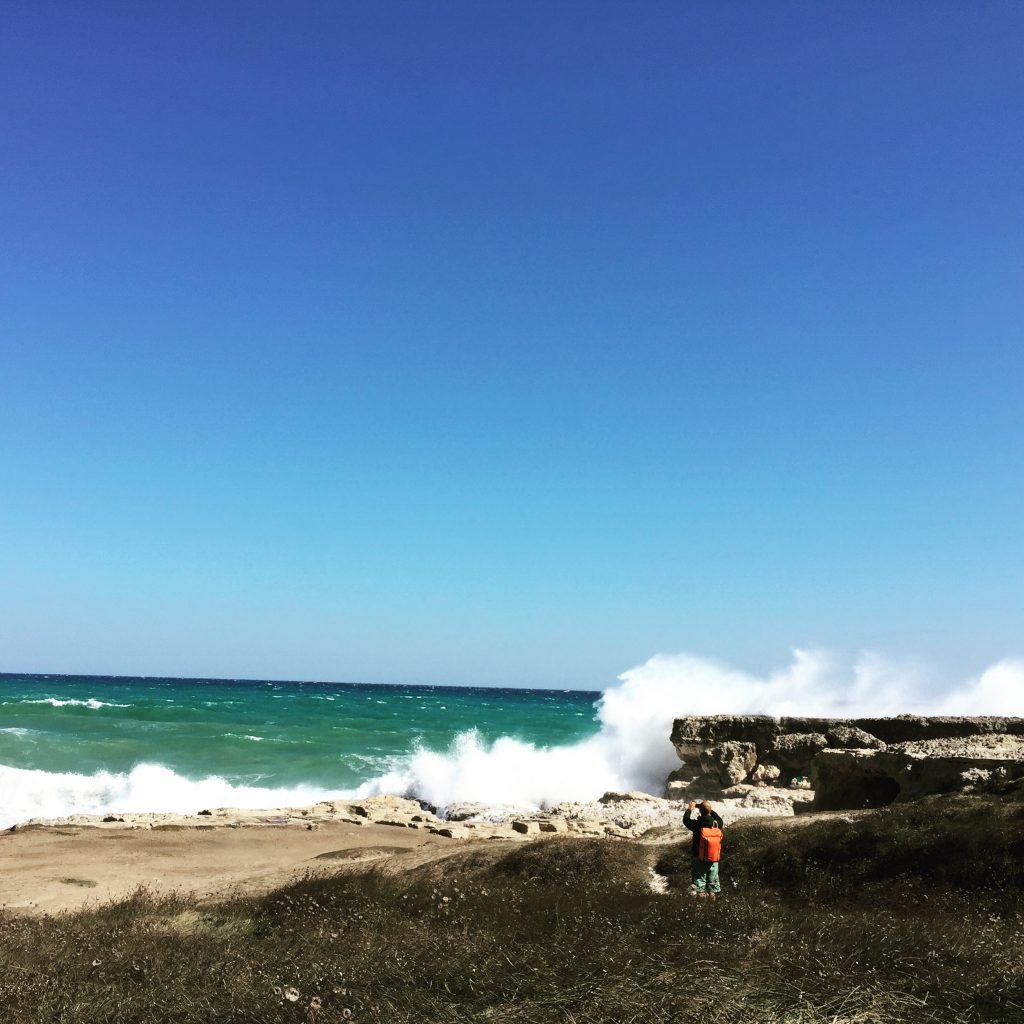 Sachant que notre séjour s’achèvera plus dans les terres qu’au bord de la mer, il nous tient à cœur d’en profiter encore au maximum. Et c’est à Torre Sant’Andrea que nous espérons trouver de beaux bains de mer et de rêve.
