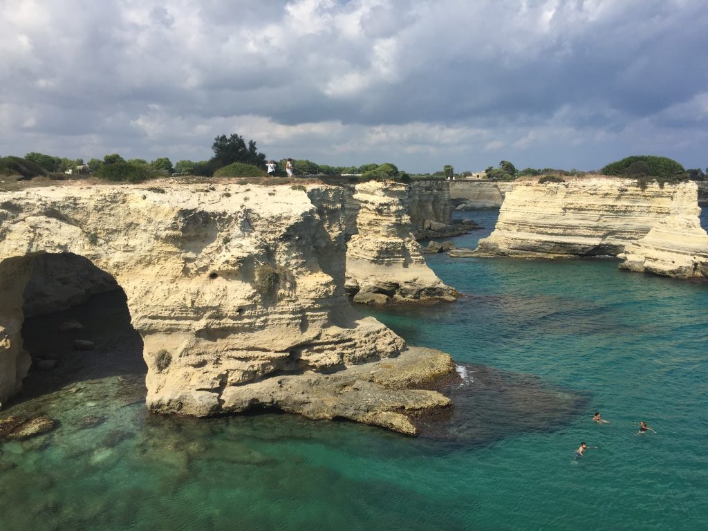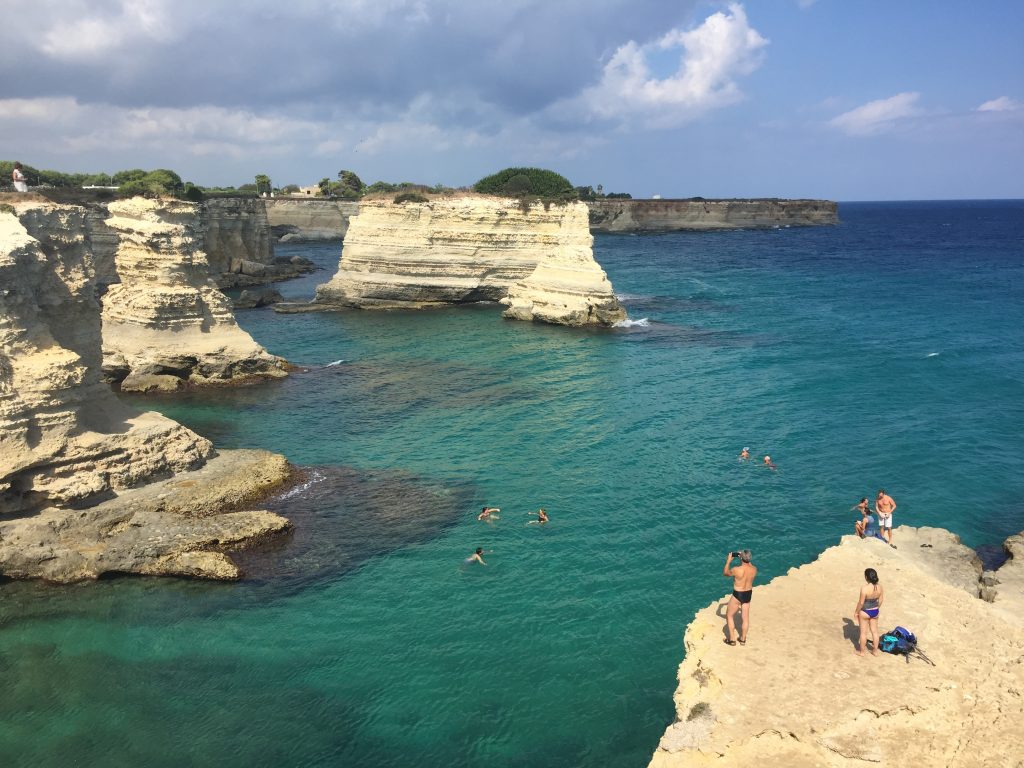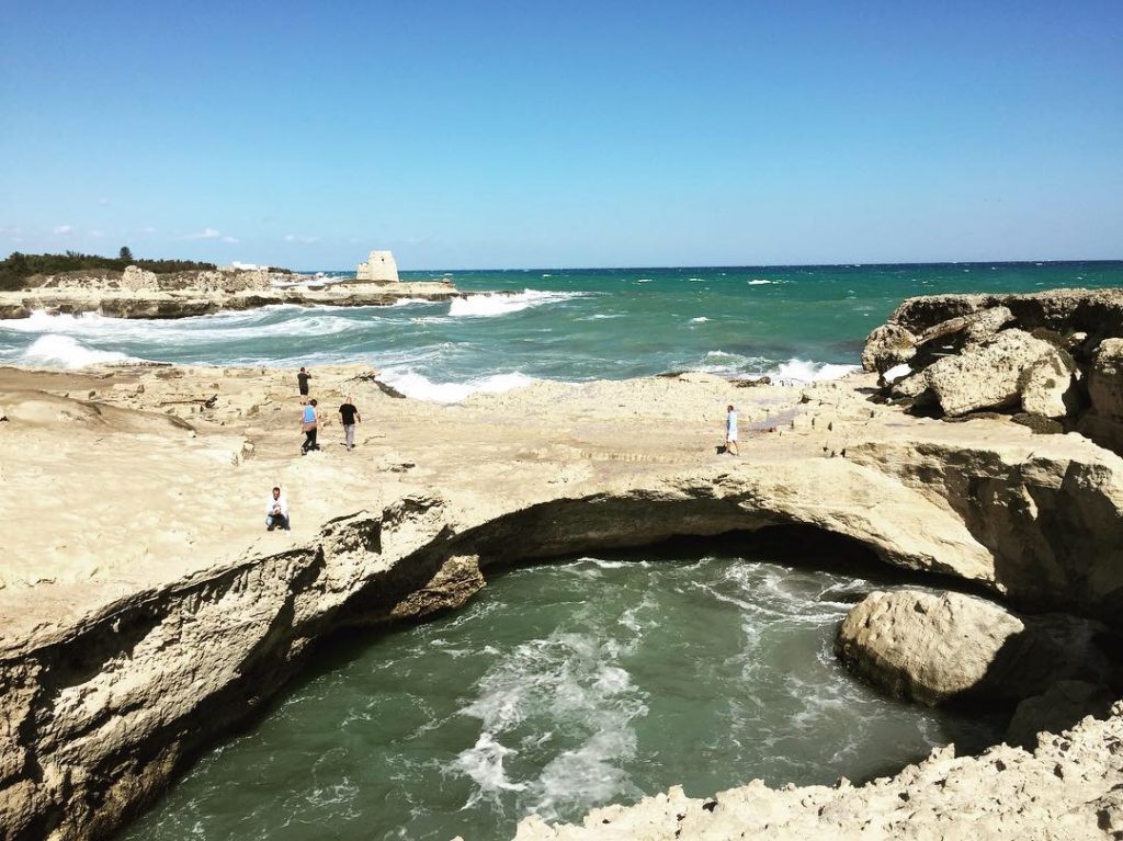 Autant vous dire que nous serons comblés : Torre Sant’Andrea n’est pas une plage à proprement parlé mais depuis les rochers, la mer est facilement accessible et offre la possibilité de se baigner dans une eau crystalline au milieu d’un décor naturel de toute beauté. En effet, la mer ici est frappée d’impressionnantes falaise rocheuse semblant transpercer l’azur, lui-même ayant creusé dans certains rocher des arches naturels. Et pour ne rien gâcher, l’eau est très poissonneuse donc pensez à emmener avec vous masques et tubas pour profiter au maximum de ce décor féérique.