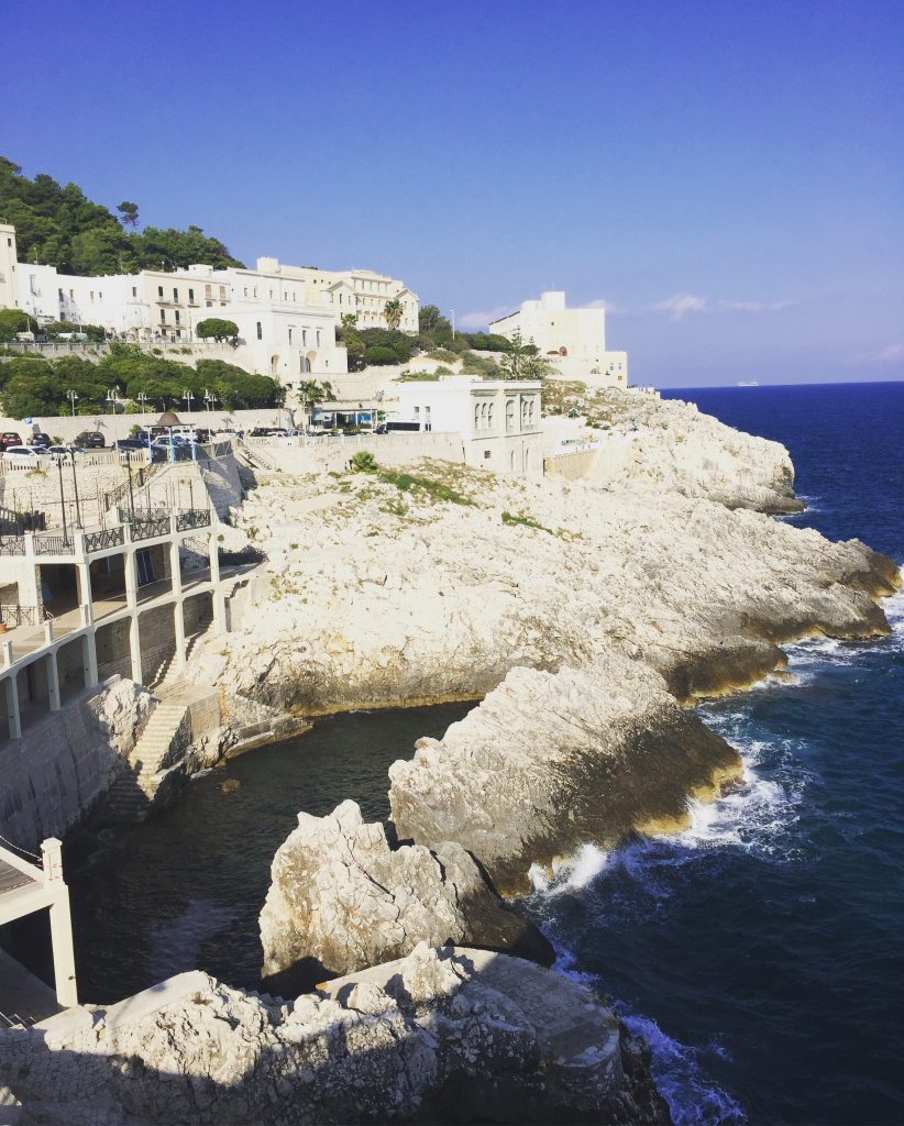 Le matin, nous prenons notre temps en allant dans la vieille ville de Giovinazzo boire un café à l’italienne c’est à dire au comptoir avant de profiter d’un bon bain de mer depuis les rochers. D’ailleurs j’en profite pour vous suggérer d’emmener avec vous des chaussons de mer. Il existe de nombreuses plages de sable dans les Pouilles mais aussi beaucoup de merveilleuses baignades depuis les rochers alors pour ne rien manquer, pensez à emmener chaussons, masque et tubas également !