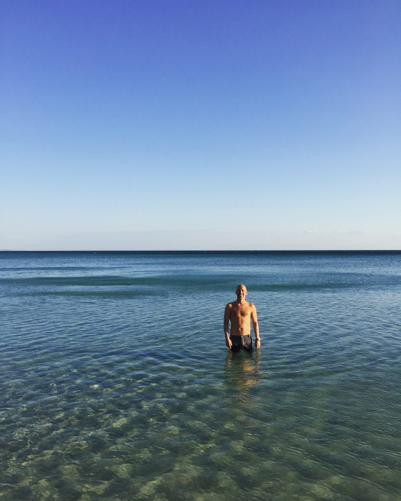 Il n’est pas encore 17h et l’appel de la mer se fait sentir. Nous nous dirigeons vers Baia Verde réputée pour ses eaux translucides. Proche de la ville mais protégée par de petites dunes de sable, celle-ci s’annonce bien agréable. Et à cette heure-ci, elle commence à se vider de ses occupants. Nous resterons ici jusqu’au coucher du soleil, totalement seuls, le ciel, la mer et nous.