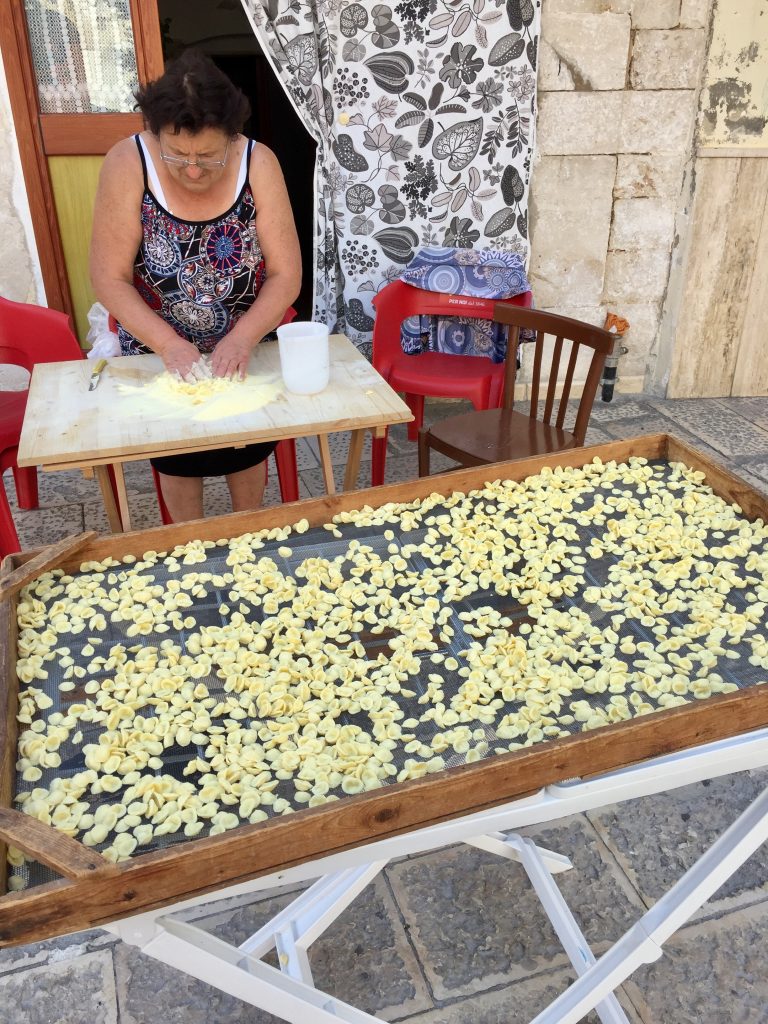 C’est d’ailleurs le meilleur endroit de la région pour se procurer la célèbre « orecchietta », vous savez, ces petites pates dont la particularité est leur forme arrondie rappelant une petite oreille et qui permet d’accueillir généreusement la sauce tandis que l’extérieur irrégulier de la pâte permet de bien l’accrocher.