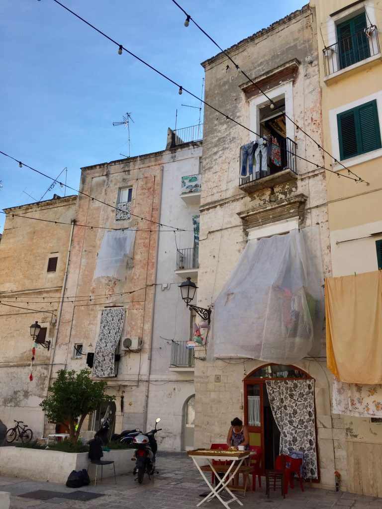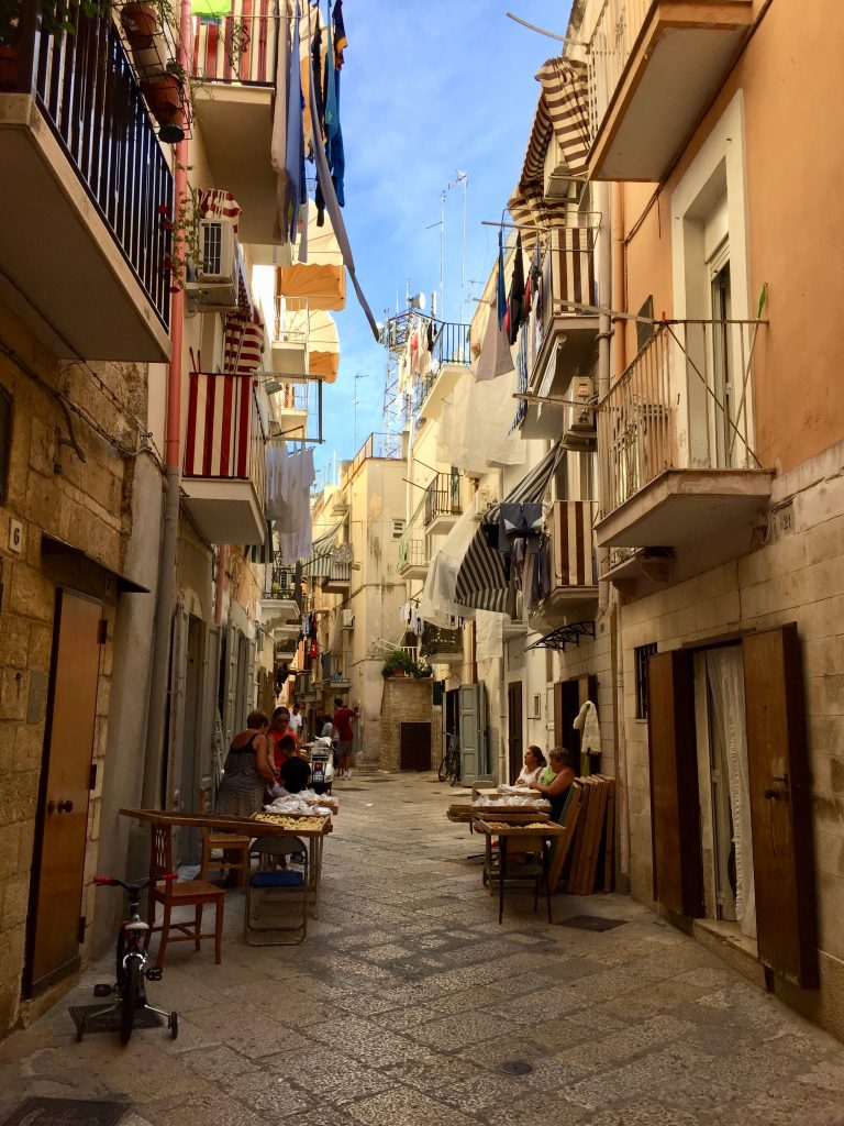 Comme nous avons aimé nous perdre dans ce labyrinthe qu’est le vieux Bari ! Déambuler dans le lacis de ruelles vous donnera la sensation d’être entré chez les habitants tant les rues sont investies par ces derniers comme une extension de leur maison. On y sèche le linge, on y joue aux cartes, on y dresse des tables pour manger, on y coiffe et on y cuisine même !