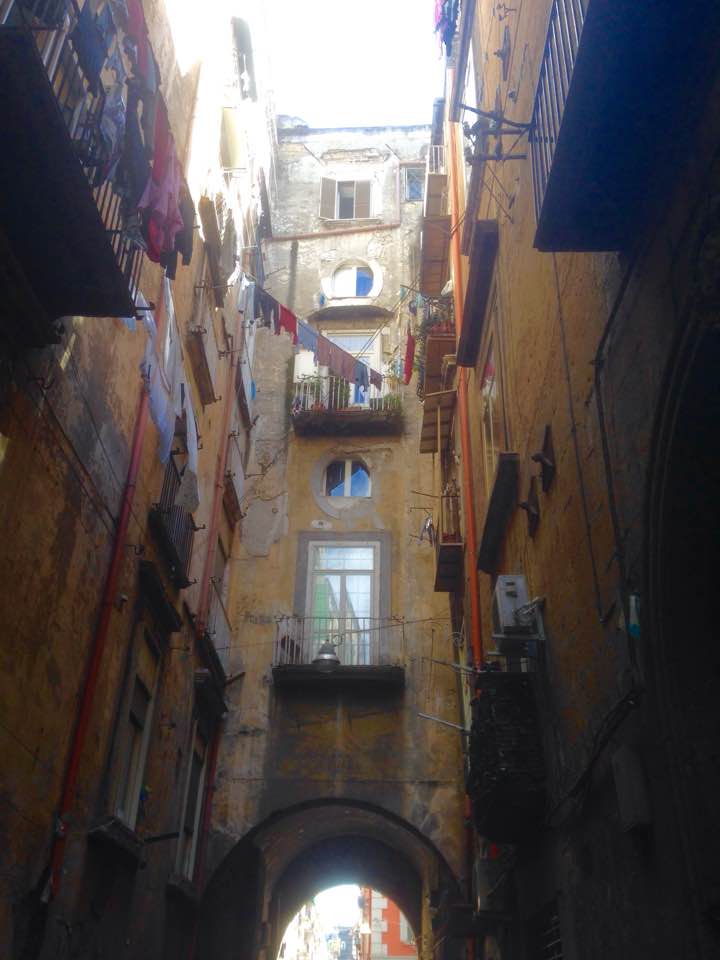 Ah Napoli ! J’ai le sentiment que comme Marseille en France, on la déteste ou on l’adore. Combien de fois n’ai-je pas lu ou entendu « que cette ville est sale », « tout est laissé à l’abandon ». Je ne peux alors m’empêcher de penser que cette ville ne s’ouvre pas facilement et que pour livrer ses secrets et bien il faut s’abandonner à elle et savoir l’apprivoiser.