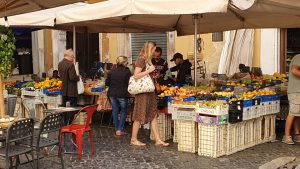 Il s’agit sans doute du plus petit marché romain, on y trouve principalement des fruits et légumes mais aussi des fleurs et certains jours du poisson.